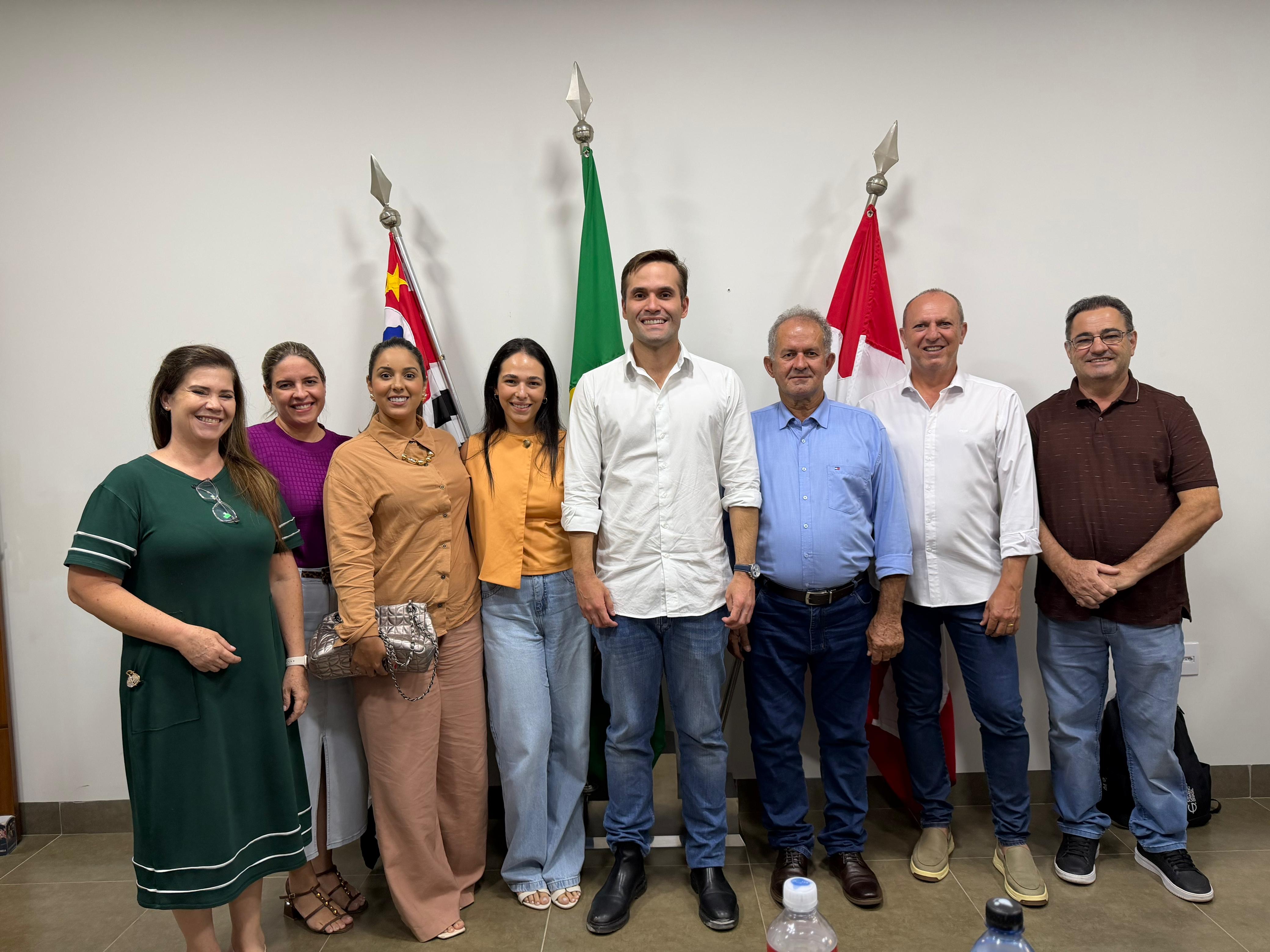 O prefeito Lourenço Lotenceti recebeu no final da tarde desta quinta feira, dia 5, em seu gabinete, a visita de Eleuses Paiva Filho, filho do médico e atual Secretário da Saúde de São Paulo, Eleuses Paiva. Acompanhado pelo seu assessor, o ex-prefeito de Ariranha, Joamir Barboza, Eleusinho, como é carinhosamente conhecido, conversou sobre as demandas de Marapoama, principalmente na área da saúde, com o prefeito Lourenço, sua equipe de governo, com o presidente da Câmara, Carlos Bortolozzo, com a vereadora Cátia Freitas e com os vereadores Emerson Gregio, Heibe Meneguesso e João Barbieri.